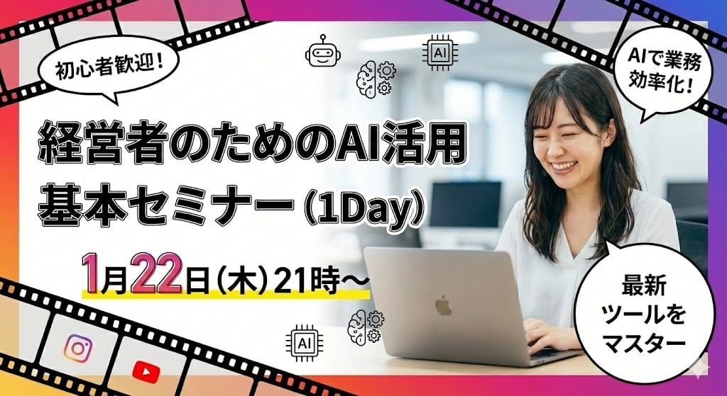 本セミナーでは、難しい操作説明は抜きにして、経営者がAIを「頼れる相棒」に変えるための最初の一歩を1時間で凝縮してお伝えします。